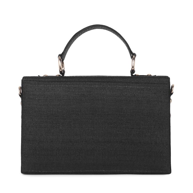 This bag features a structured silhouette with a refined top handle and a detachable chain strap, allowing it to be styled as both a handheld statement piece or an elegant crossbody. The contrast of luminous gold on black symbolises a powerful reminder: there is beauty even in the smallest of beings, if only we pause and truly observe.