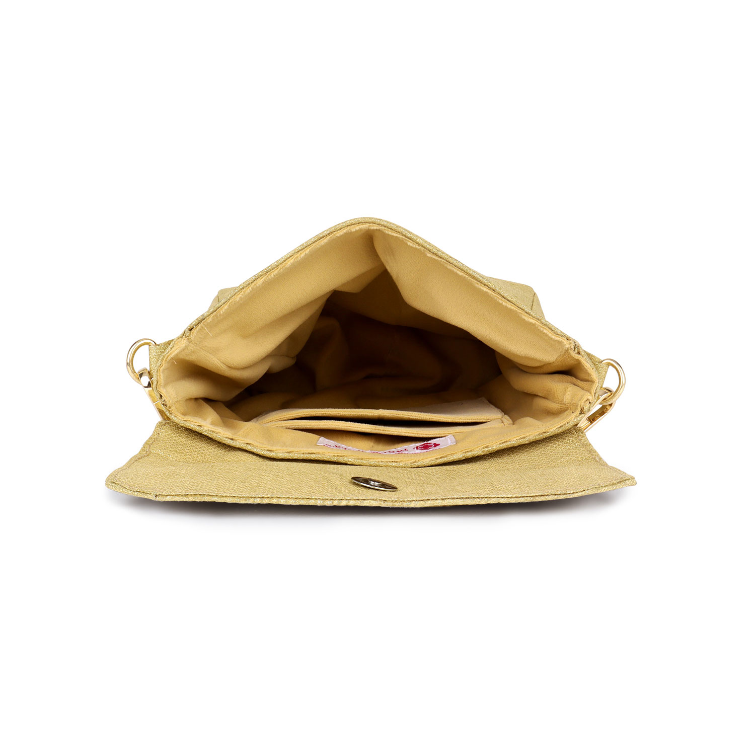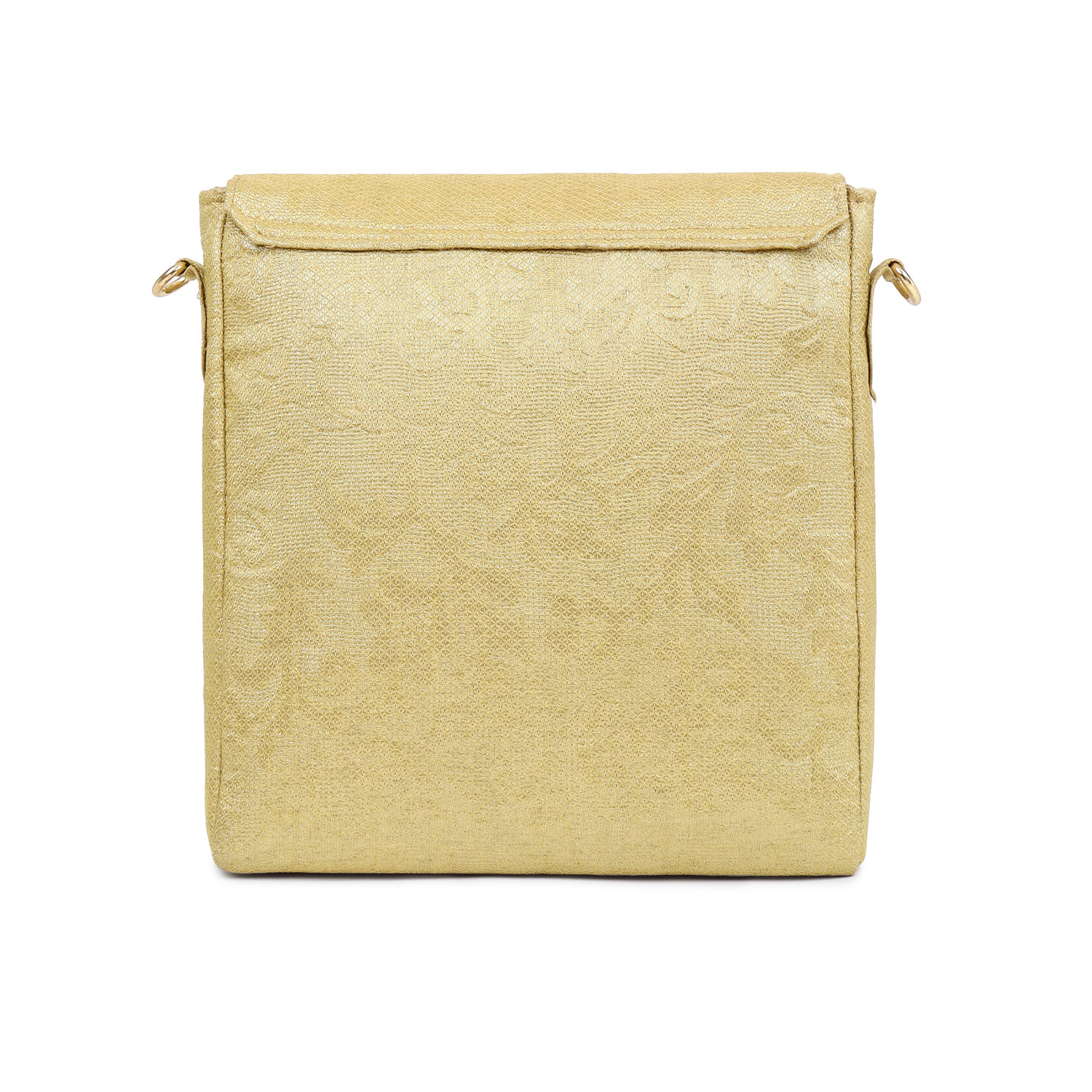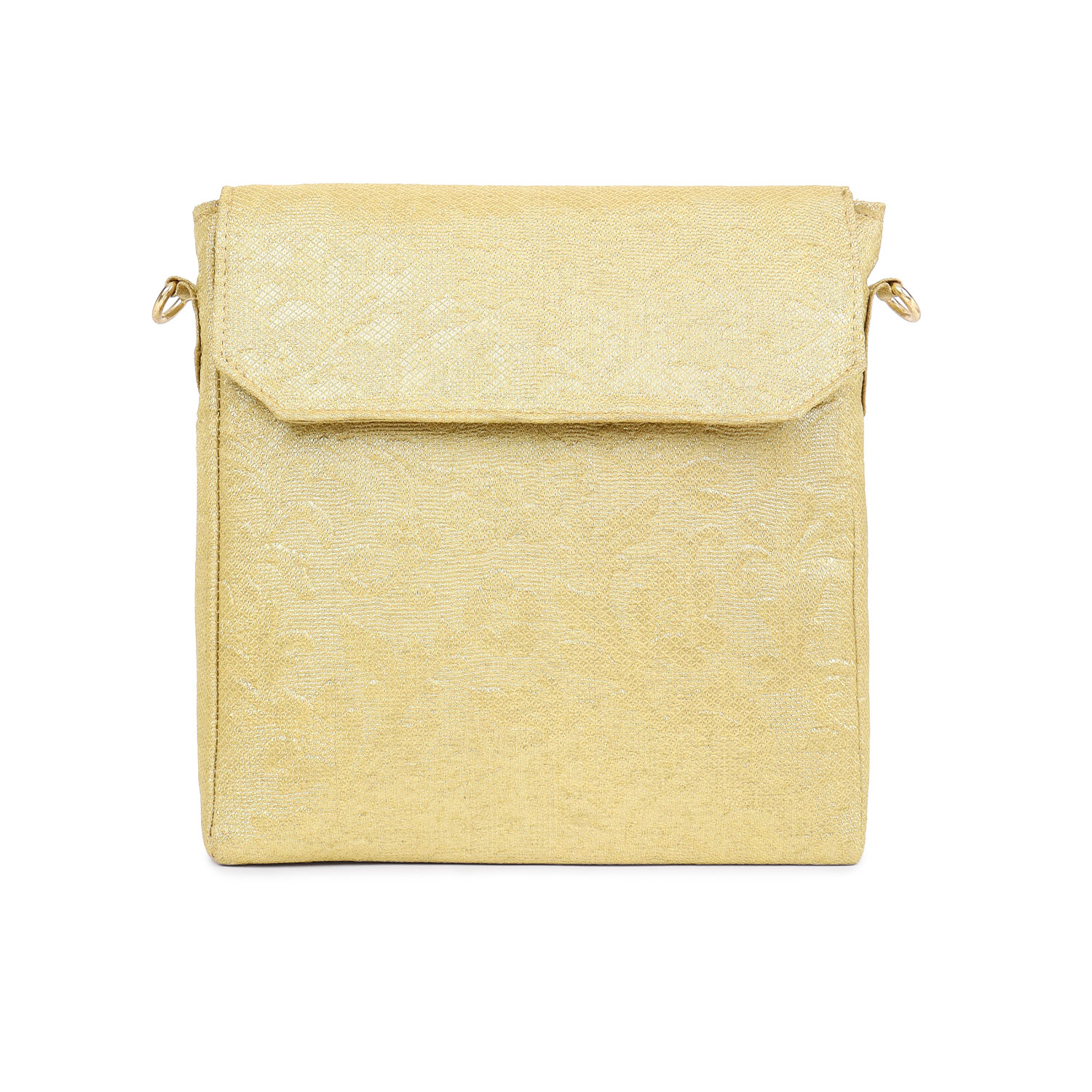 MATERIAL : Antique Gold fabric, Antique Gold Poly-Dupion lining, Antique gold chain,phone 14 and more. This handcrafted product is ready to ship.